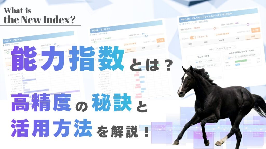 「能力指数」とは、競走馬が馬券内に入る可能性を数値化した指標です。